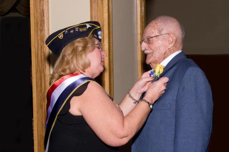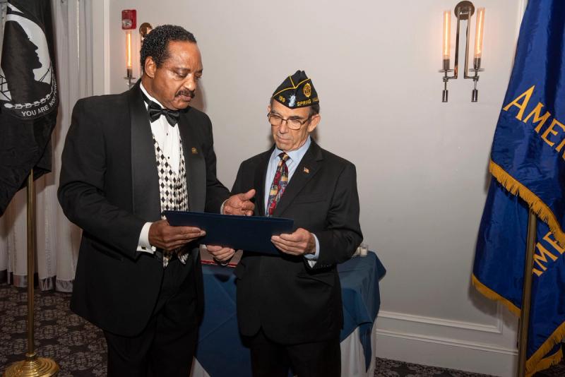 Robert Dennis being presented award for years of service with the Moscarella Post 199, Spring Valley.
